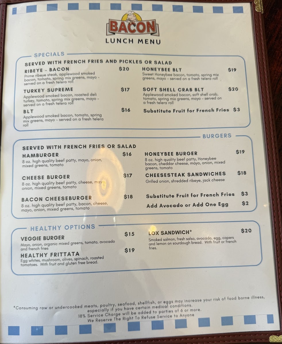 Garlic aioli, onion, mixed greens, tomato, cheddar, honey bee bacon